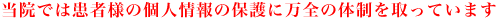 患者様情報を正確かつ最新なものにするために、適切な措置を講じます。また、患者様情報の漏洩・紛失・改ざんあるいは患者様情報への不正なアクセス等が行われることを防止するため、必要と考えられる対策を講じます。 |